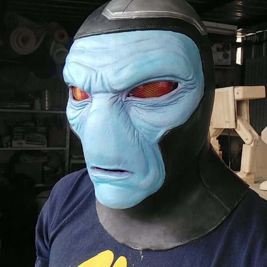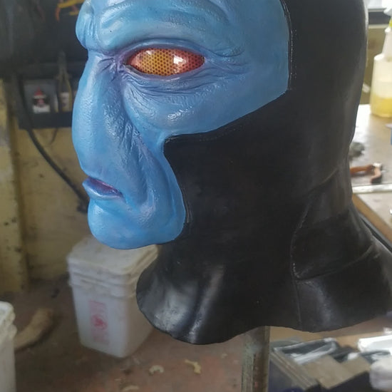 This is a wearable mask. The mask has a hole in the mouth where you can breathe easily, the eyes are tinted acrylic spheres, you can see clearly through them.