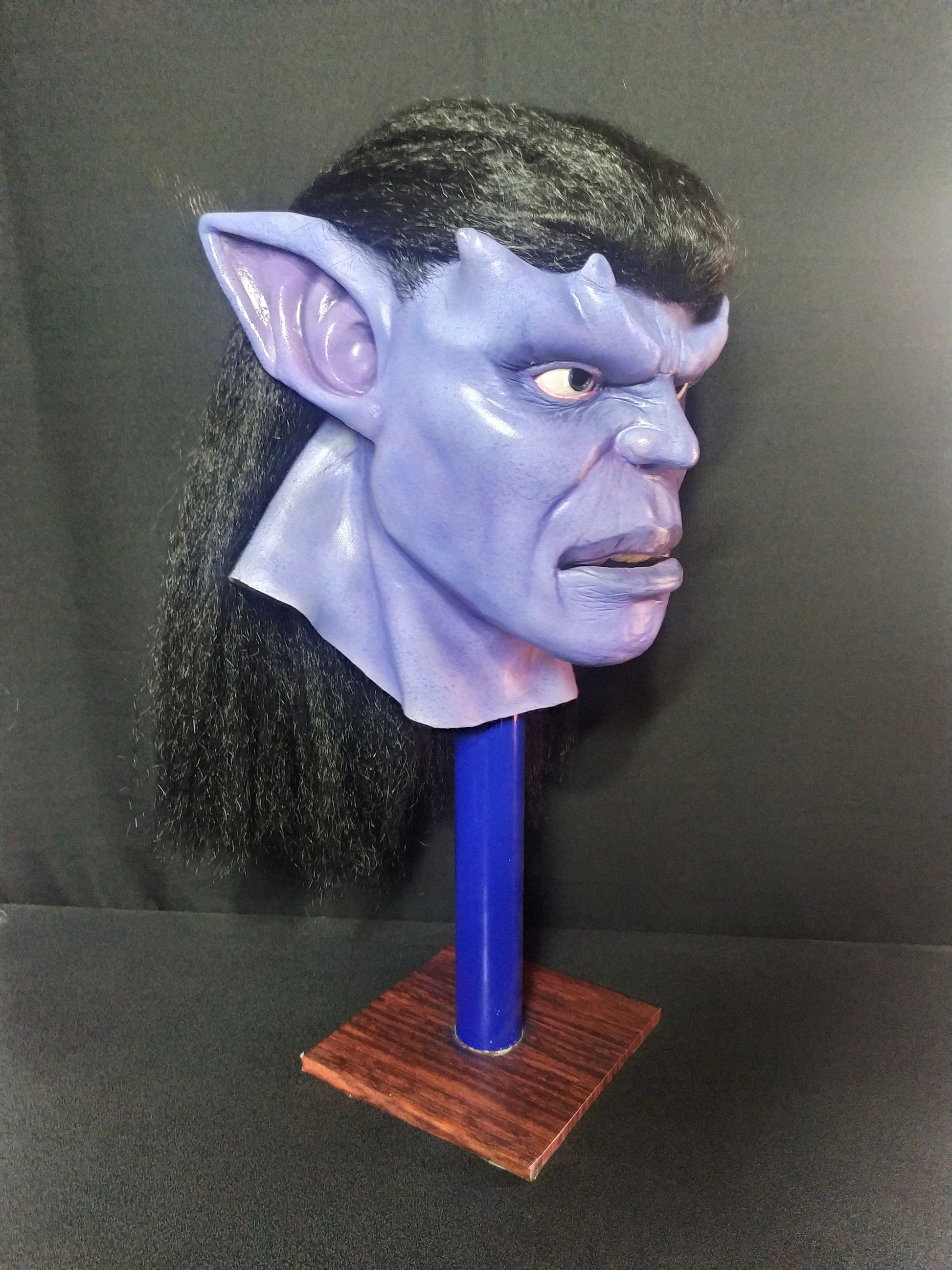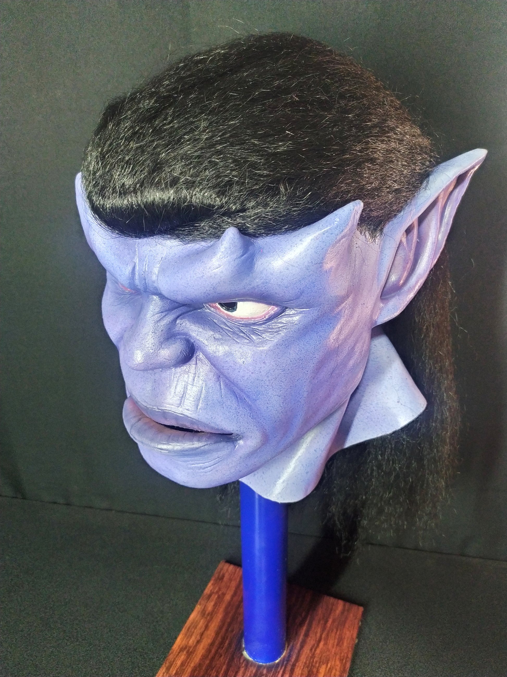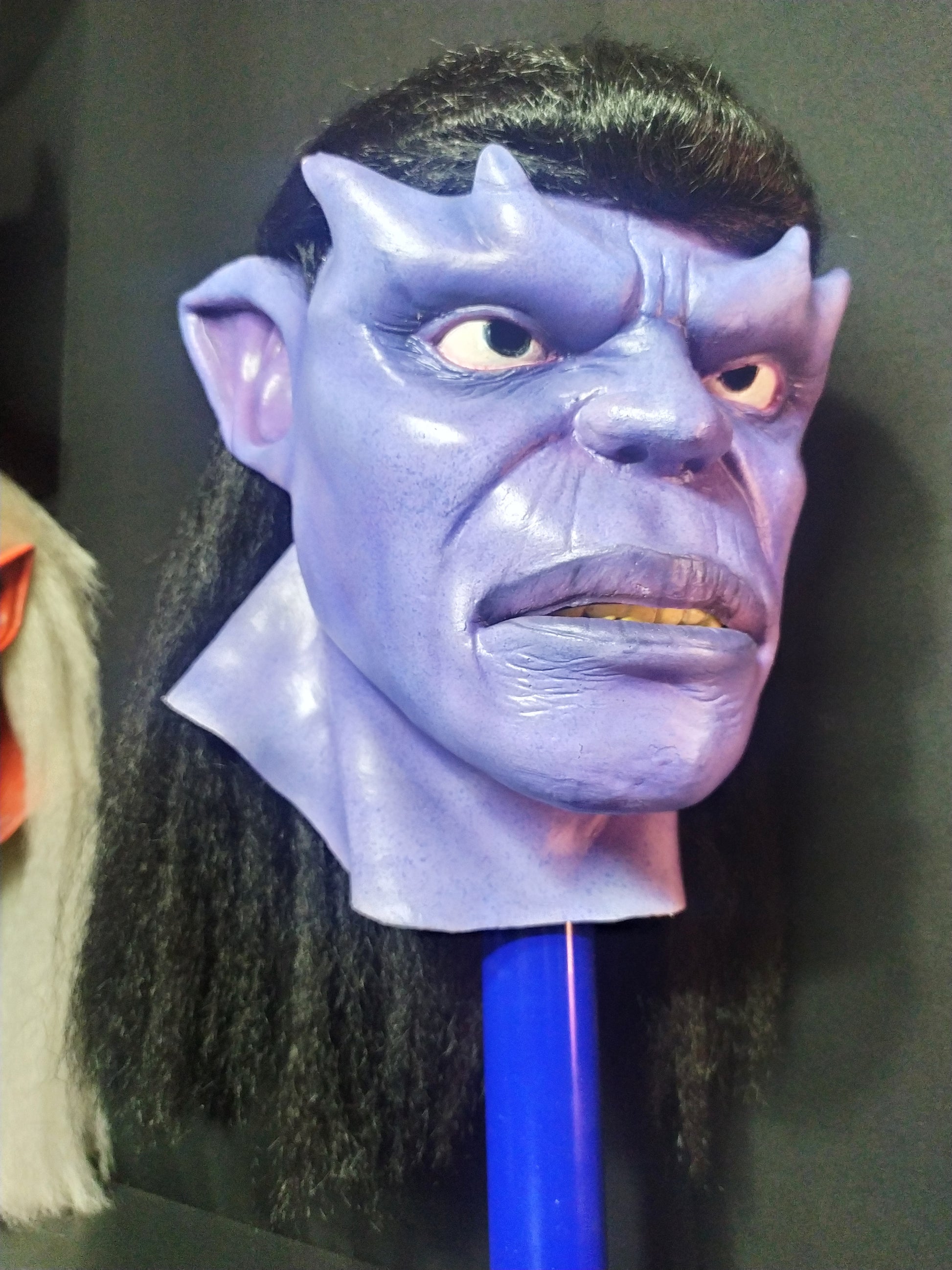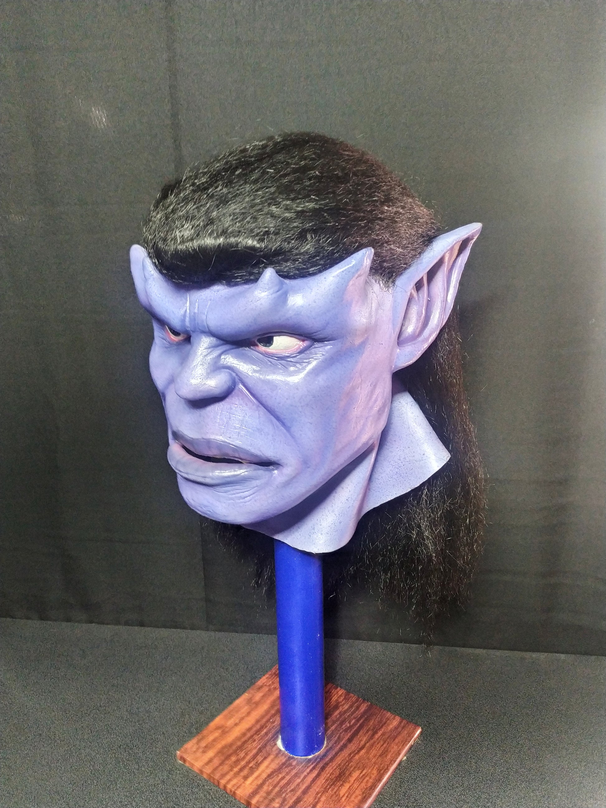 This is a wearable mask. The mask has holes in the pupils where you can see through.