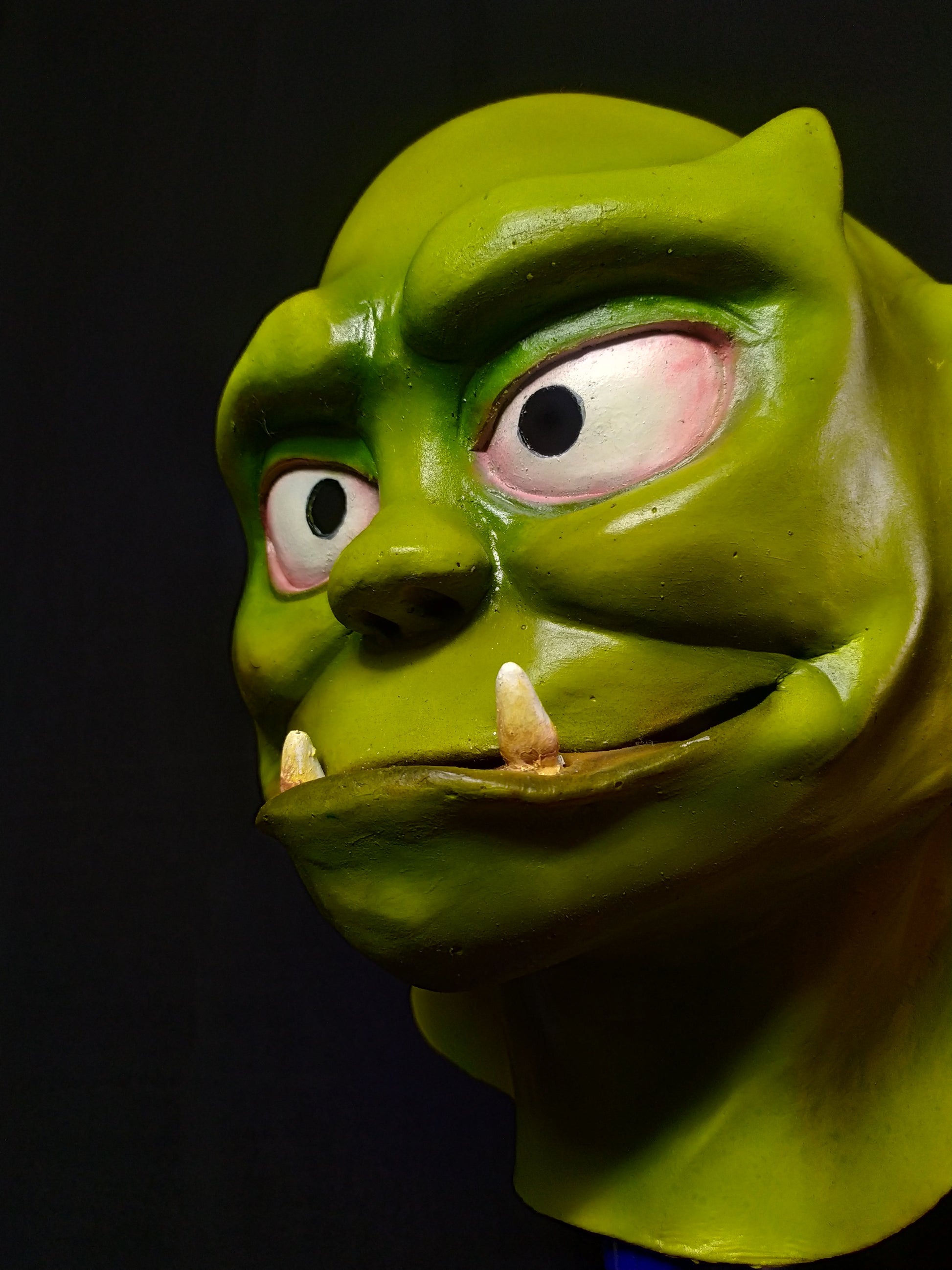 This is a wearable mask. The mask has holes in the pupils where you can see through.