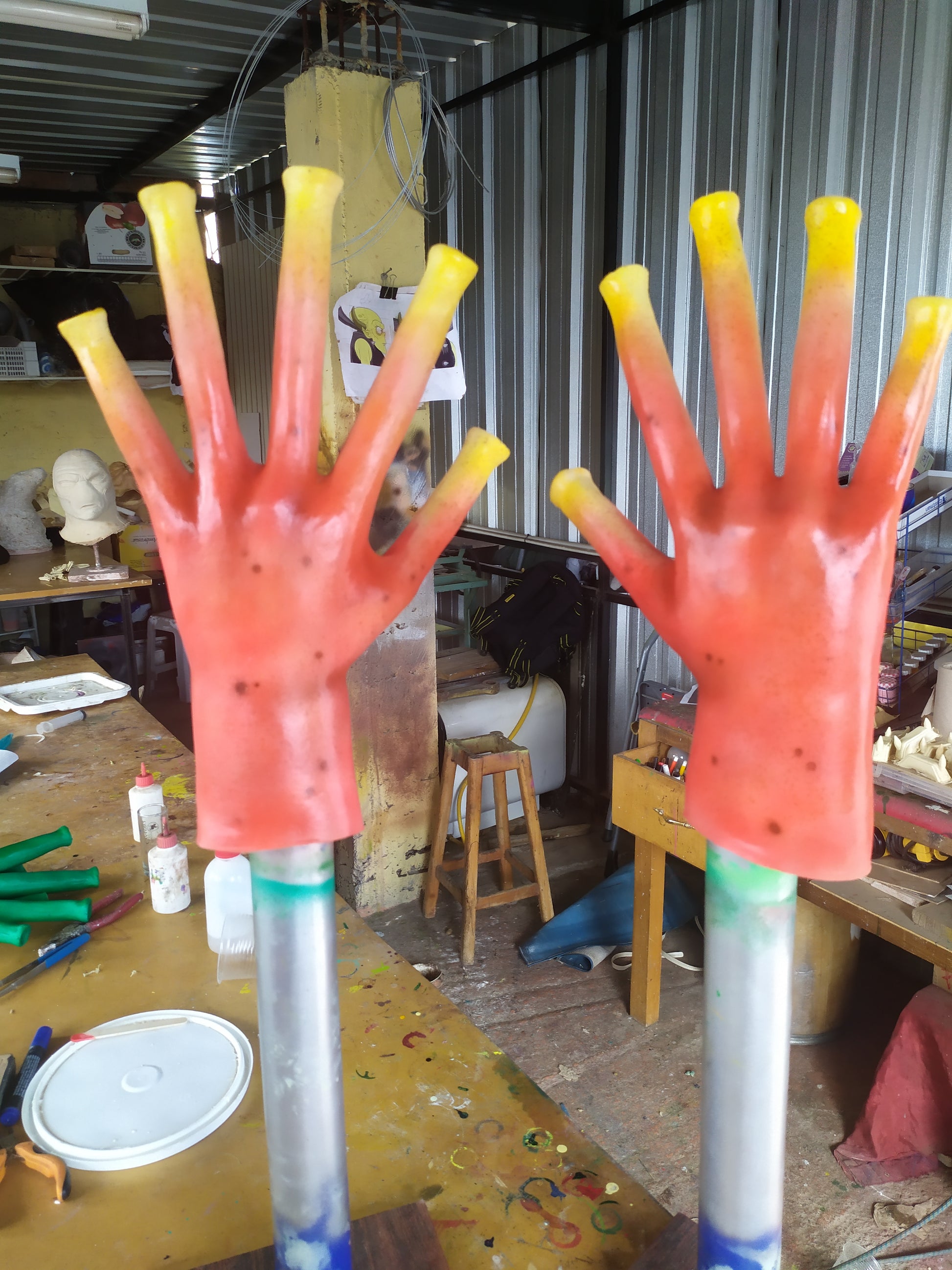 This is a wearable mask. The mask has a hole in the mouth where you can breathe easily, the eyes are tinted acrylic spheres, you can see clearly through them.