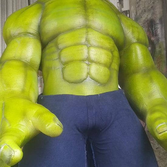 The costume is oversized and has only one standard adult size. It can be worn by users who are 1.65 meters tall or taller. The final height of Hulk depends on the user's height, 2 meters for a user of 1.70 meters height.